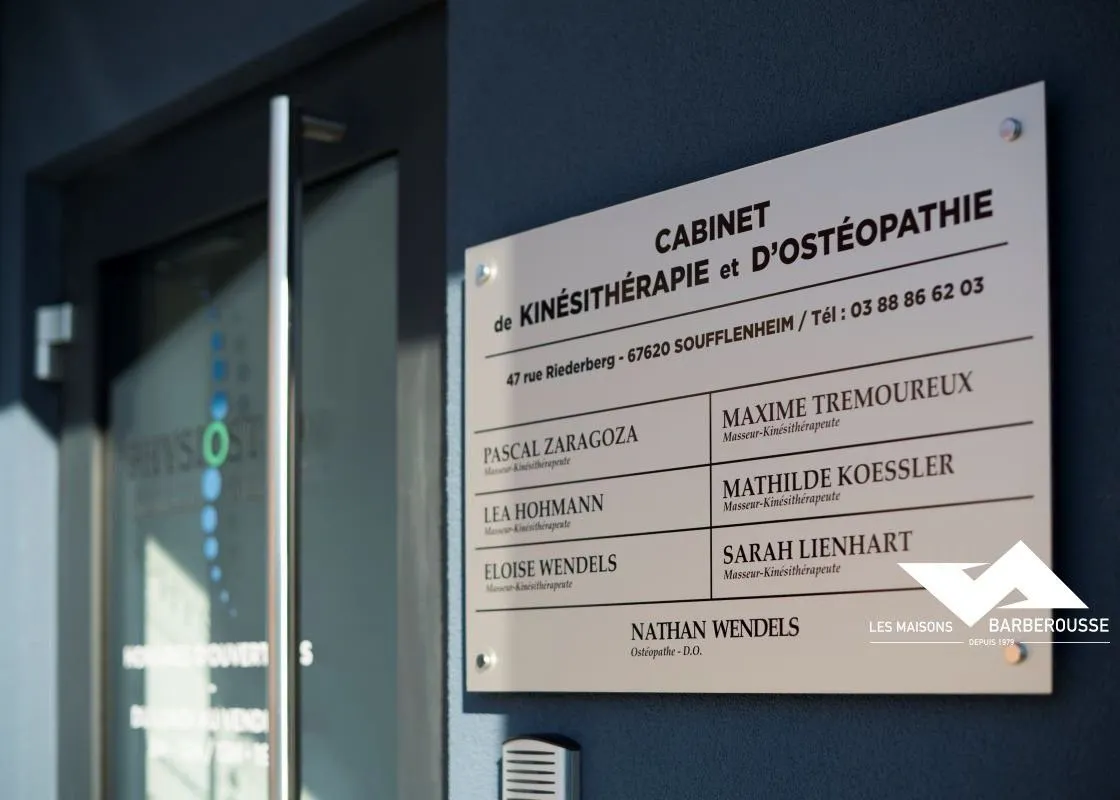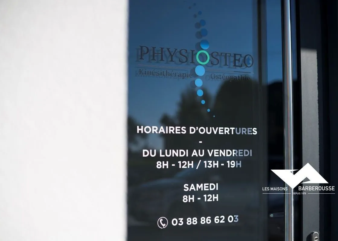 Situé dans le lotissement du Riederberg à Soufflenheim, ce bâtiment moderne accueille le cabinet de kinésithérapie et d’ostéopathie PhysiOstéo.
