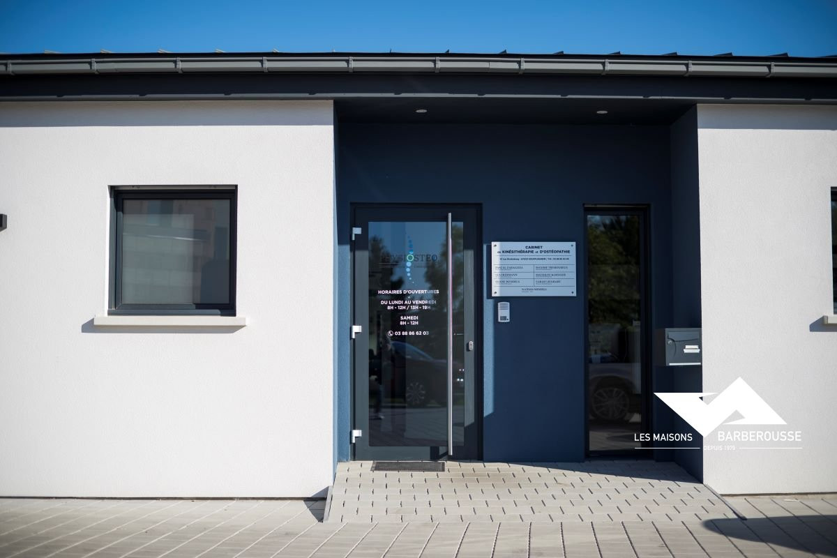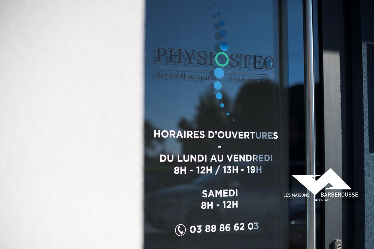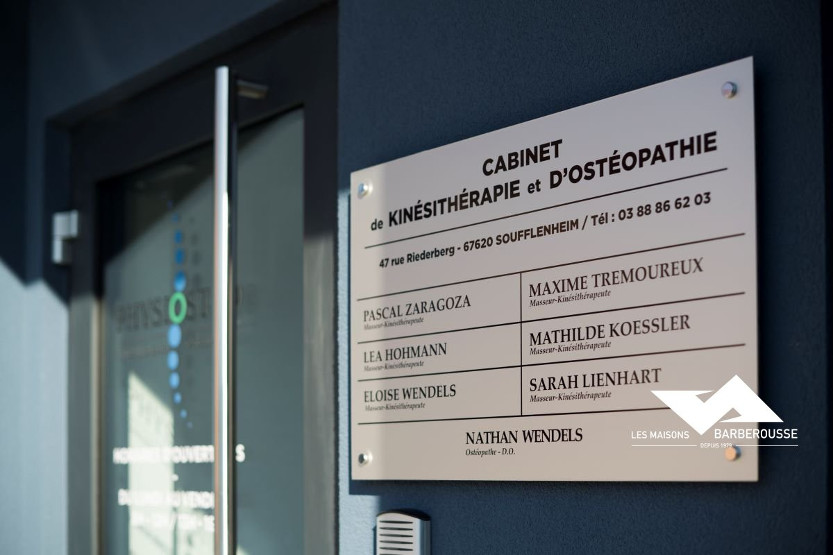 Situé dans le lotissement du Riederberg à Soufflenheim, ce bâtiment moderne accueille le cabinet de kinésithérapie et d’ostéopathie PhysiOstéo.