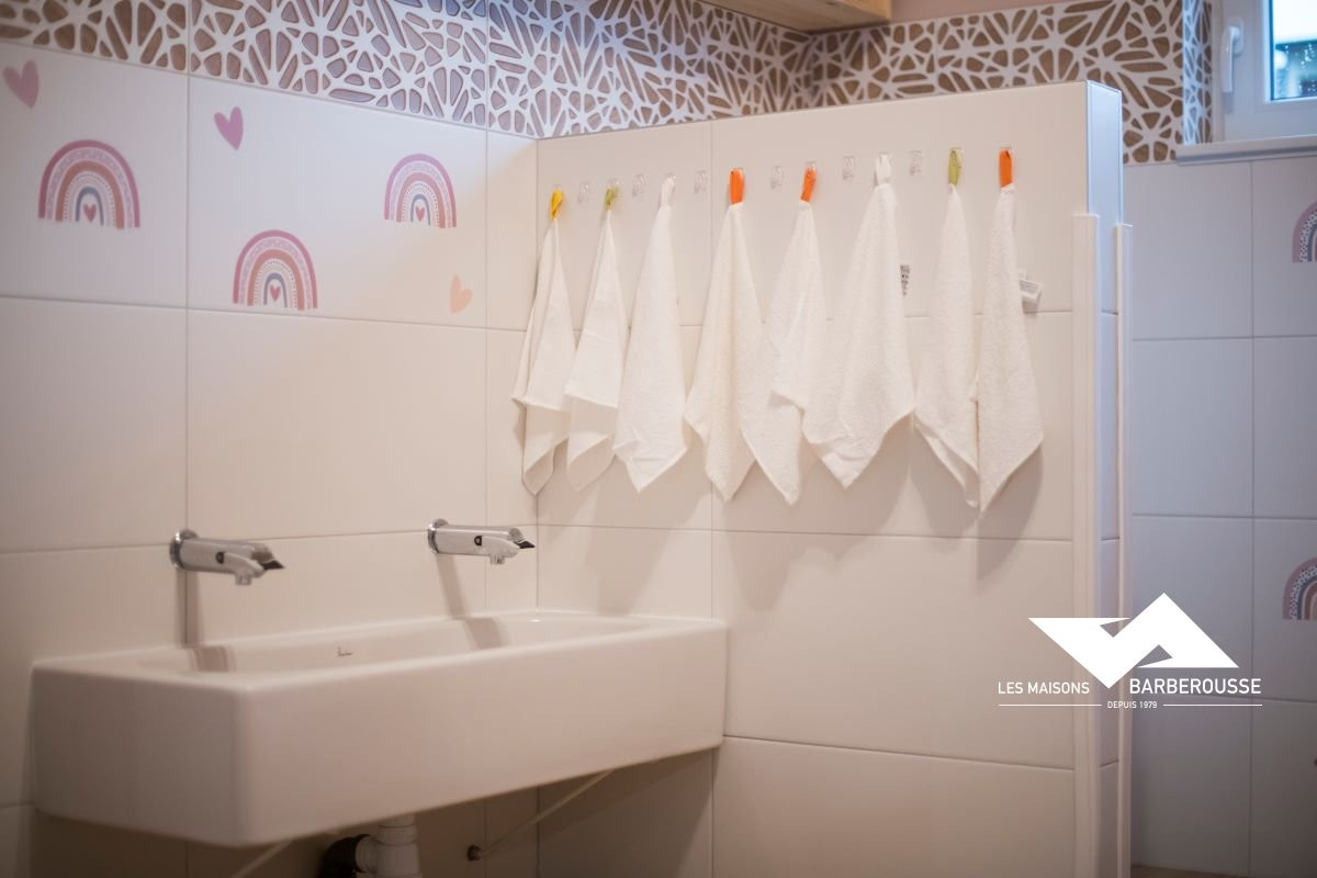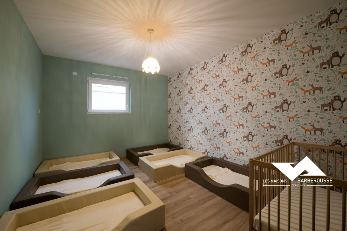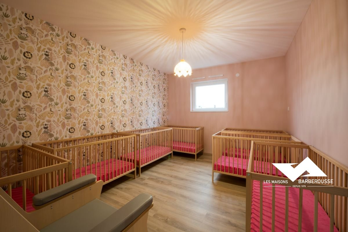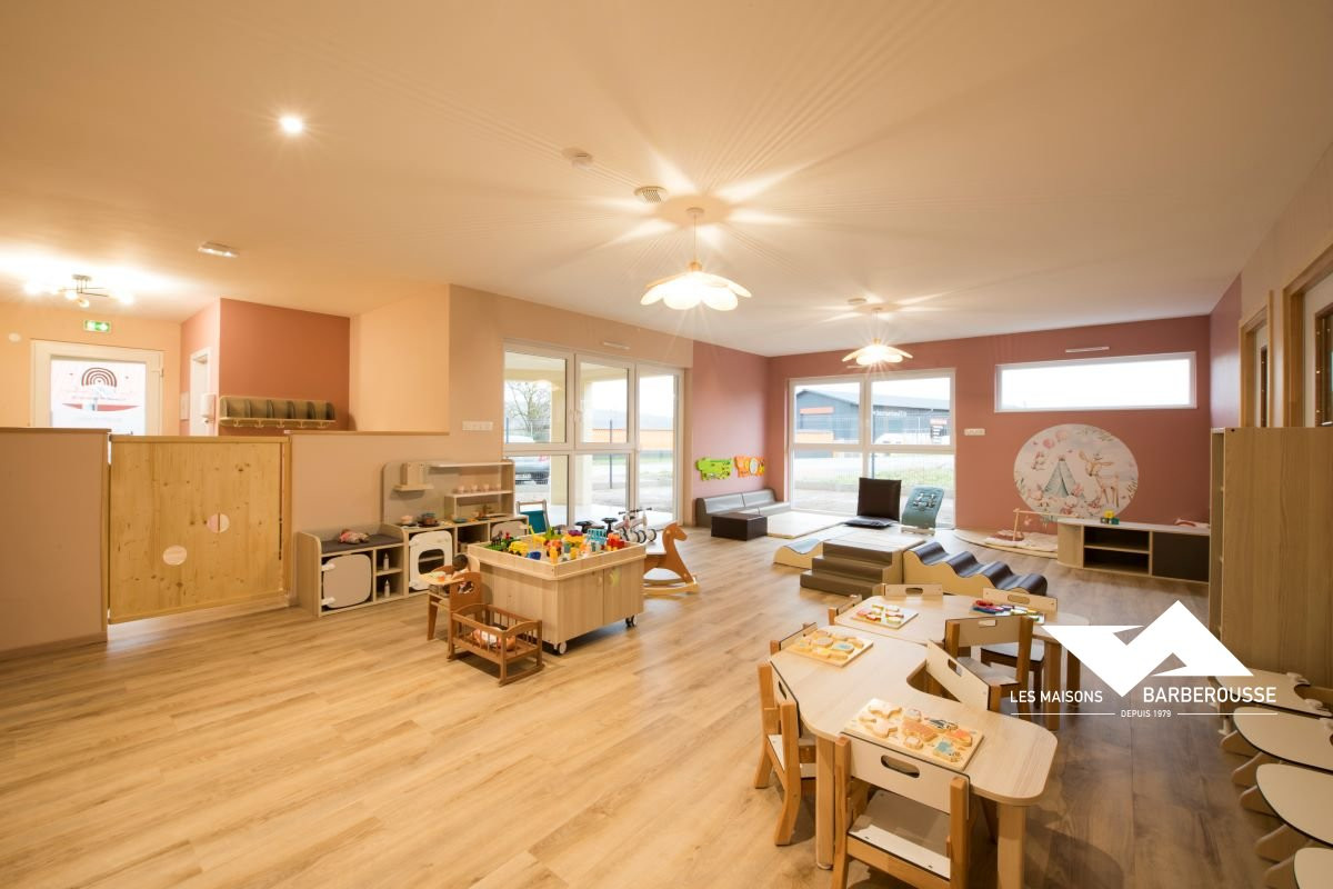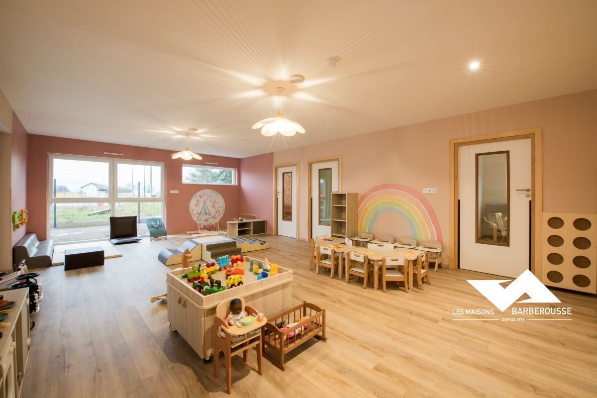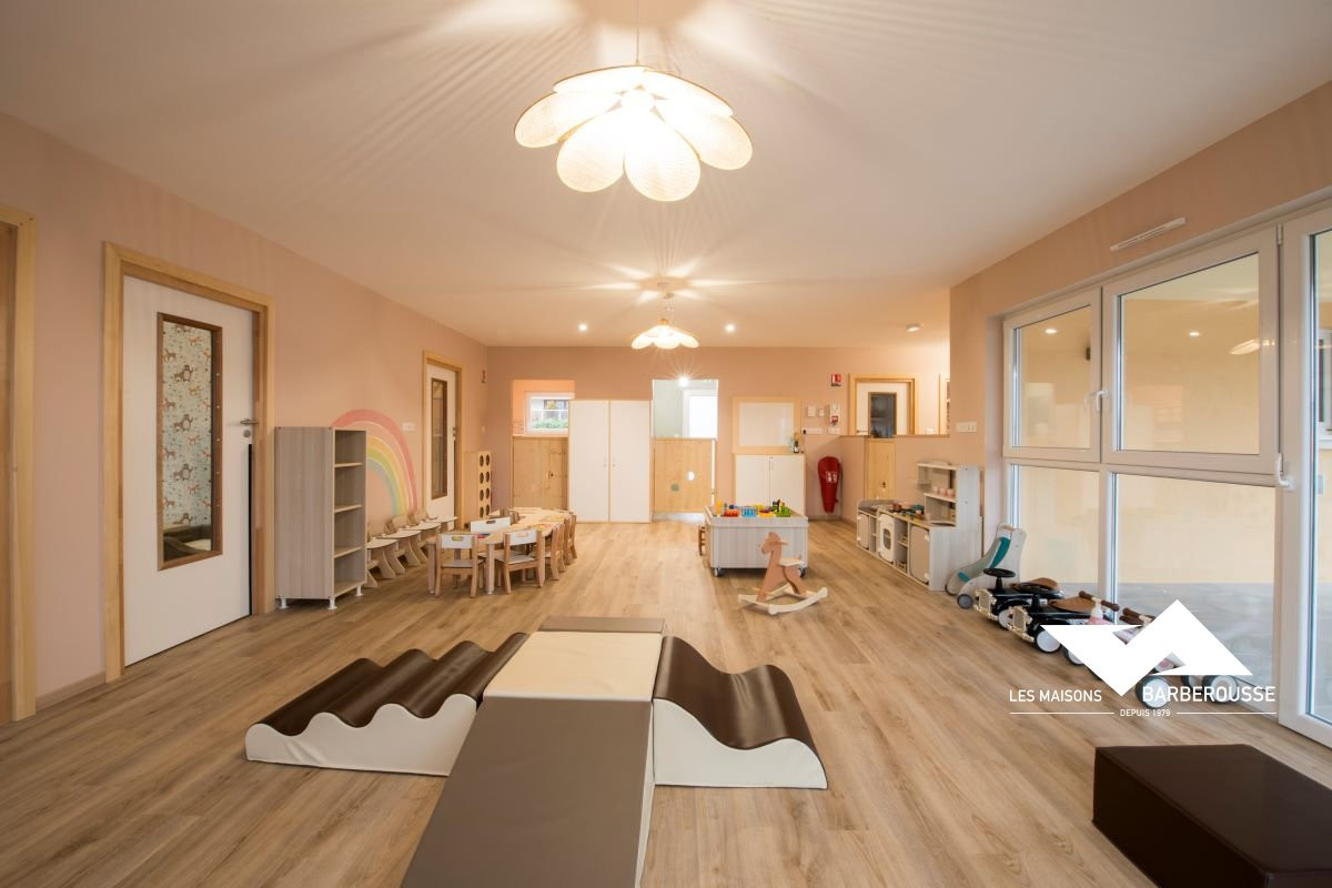 Pensée pour favoriser l’éveil, la sécurité et le confort des enfants, cette construction de plain-pied se distingue par ses espaces intérieurs colorés et apaisants, conçus sur mesure pour répondre aux besoins du personnel encadrant.